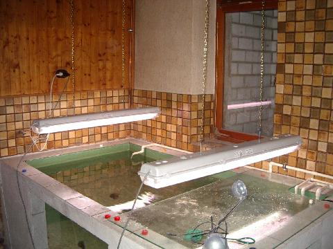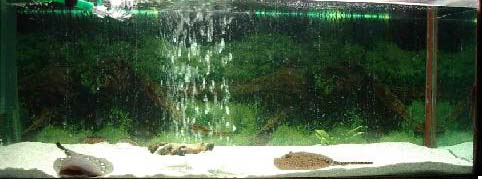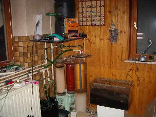Mein Großes Beton Aquarium 2001 !Info: Leider gibt es diese Becken nicht mehr.Becken1 Besatz :1 Leo Weibchen 1 Leo Männchen 1 Henlei Weibchen Mein Aquarium besteht aus Beton und Kalksandsteine mit 2 Scheiben Vorne und an der Rechten Seite. Die Außen Maße L 2,60 , T 150 ,H 0,80 Die Innen Maße L 240 , T 130 ,H 0,70 Das Aquarium ist mit Flüssigkunstoff versiegelt . Wasserinhalt:2300l 2 Biofässer mit je 40l Inhalt gefüllt mit Siporax und Biobälle 1 Nitratharzsäule mit 25l 1 Ani und 1 Kati Ionenaustauscher je 10l 1 Fluval Filter 403 für Bioseite 1200l/h 1 Hydorseitzpumpe 2750l/h 2 Heizstäbe je 300 Watt 1 Durchlüfter Optima 5500 ccm Wasserwerte: PH: 7 GH: 13 KH: 4 Ammo:0 Nitrit:0 Nitrat:5 mg/l Themperatur:26°C Wasserwechsel alle 7 Tage immer Sonntag 30% Becken 2 Besatz: 1 Leo Männchen 1 Henlei Weibchen Glasbecken Maße L 2,0 , T 0,60 , H 0,60 Wasserinhalt:720l Filter: 1 Fluval 303 870l/h 1 Biofilter Eheim 600l/h 1 Nitratharzsäule 5l 1 Heizstab 300 Watt 1 Dürchlüfter Maximar R 2400 ccm Becken 3+4 : Aufzuchtbecken und Quanrantäne Becken Glasbecken Maße L 1,5 , T 0,50 , H 0,60 450Liter Glasbecken Maße L 1,0 , T 0,50 , H 0,60 200Liter Gefüttert wird 2-3 mal am Tag: Gelantine Futter , Riesen Tauwürmer , Riesen Rotwürmer , Garnelen ca 4-6 cm , Krill Groß ca 6 cm Kleinere Rochen ca 10-20 cm Tubiflex , Jumbo Mückenlarfen , Krill Grob , Rotwürmer |